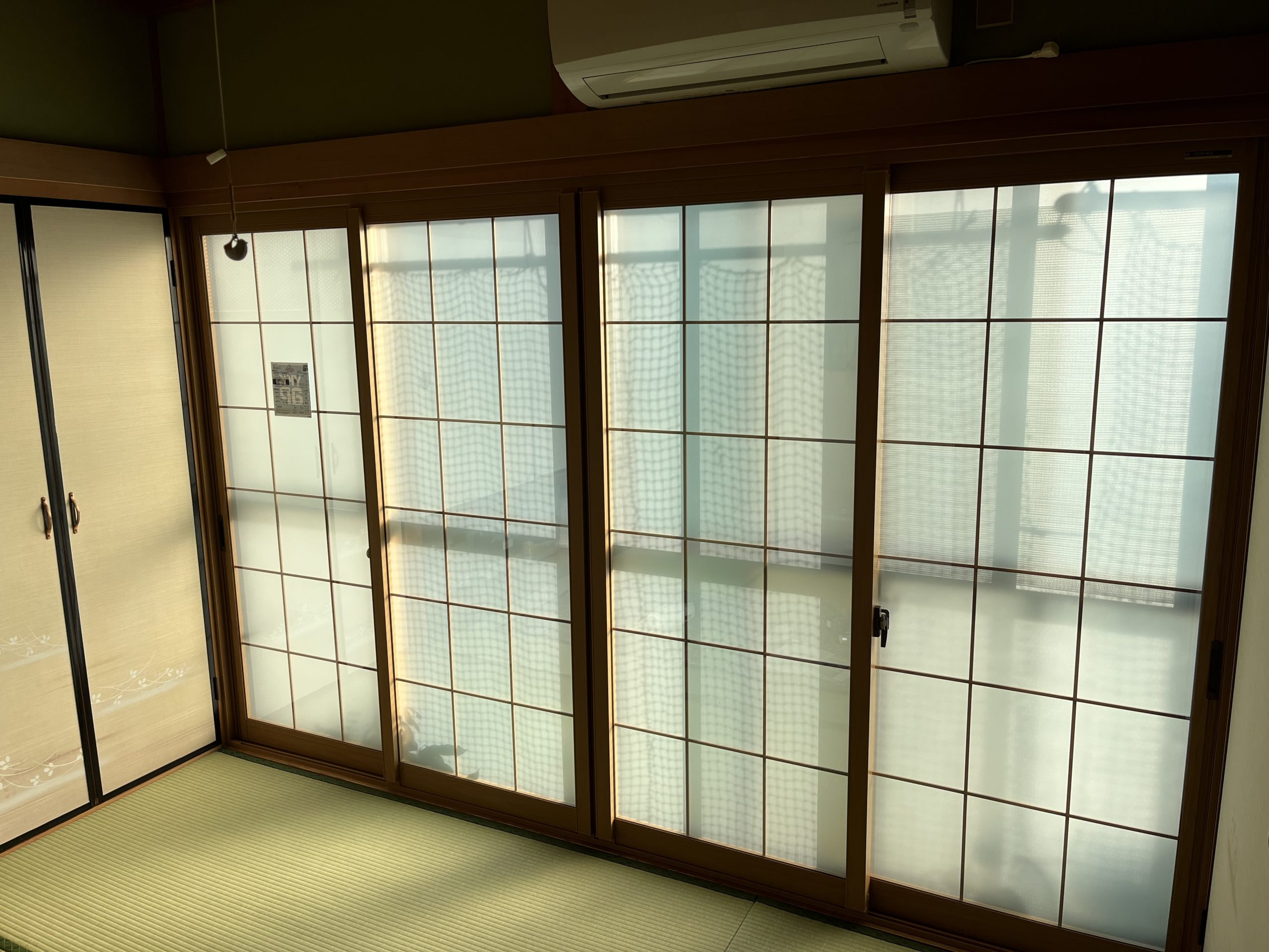 お部屋をポカポカに暖かくする方法とは、、、 内窓をつけて二重サッシにするのが1番です!!! 既存の障子を処分して、そこに取り付ける事も可能ですよ。 障子風の格子入りガラスにすれば、カーテンも必要ありません😄