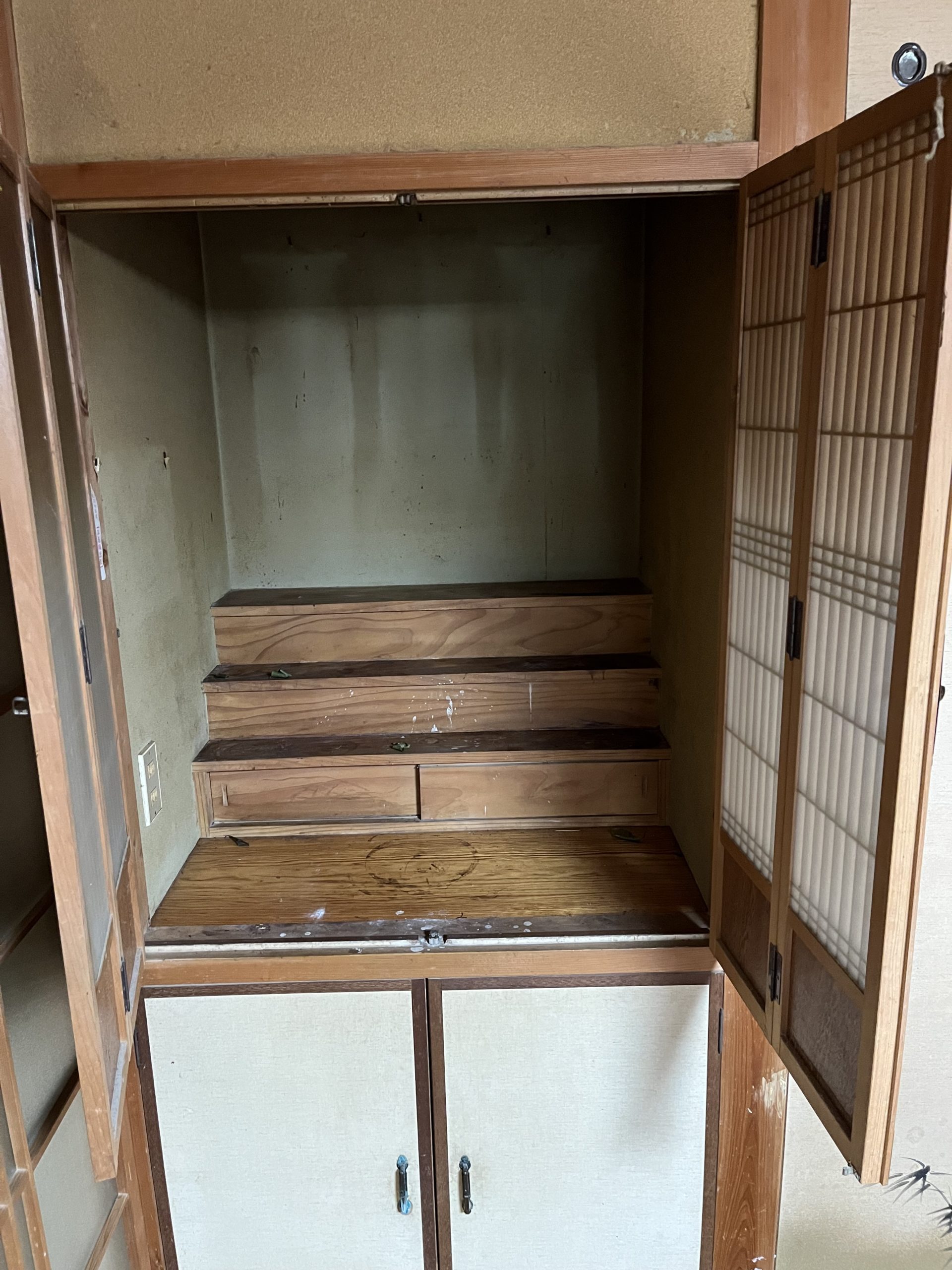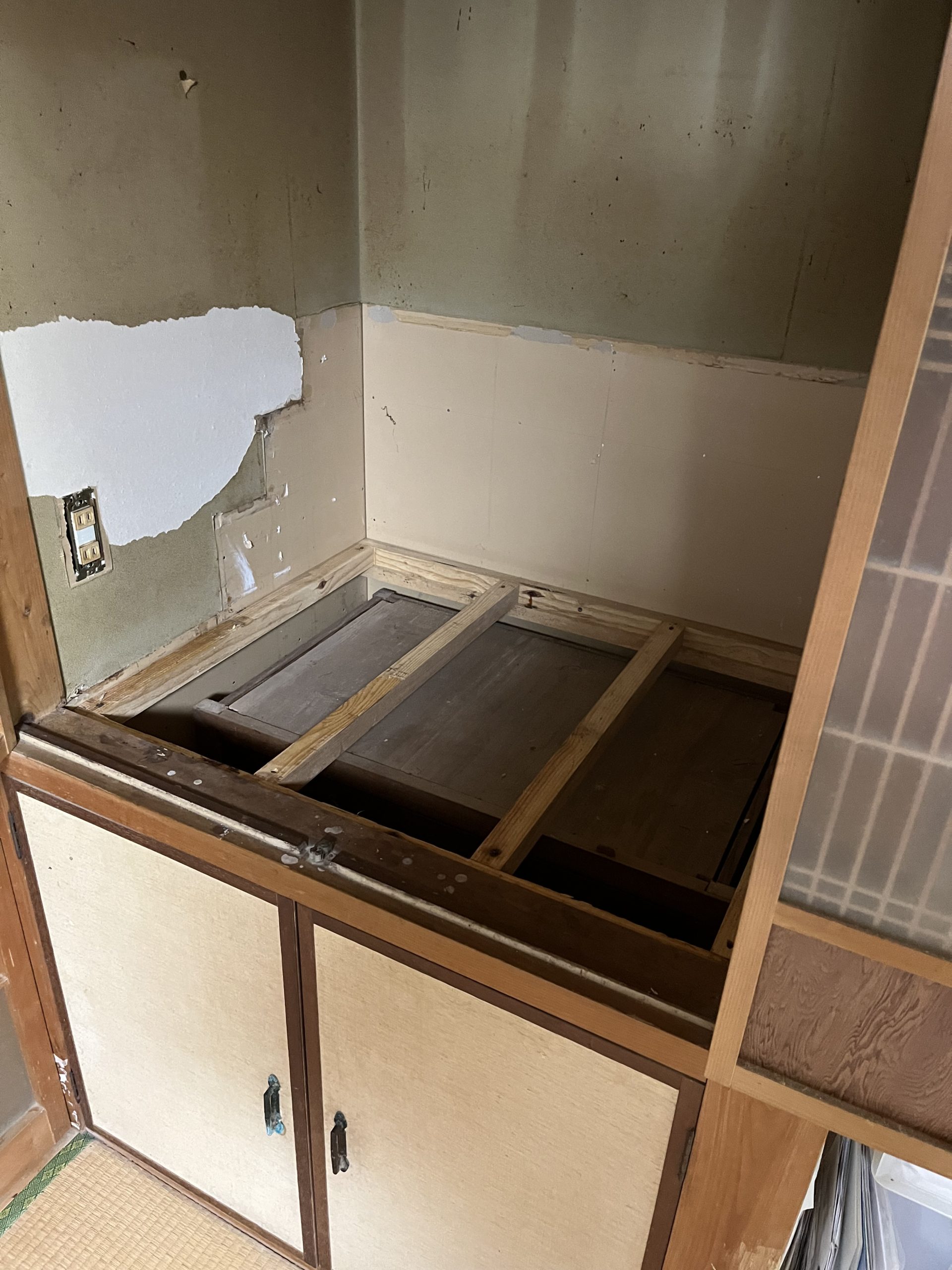 お盆までの工事でしたがなんとか完了しました まずは床のフワフワ解消です フローリングの重ね貼りをしています 次はトイレです 綿壁からクロスへ 電気と換気扇も交換してます 和室の収納も綺麗になりました✨ 棚も追加しております。 明日からお盆休みですねー! ありがとうございました。