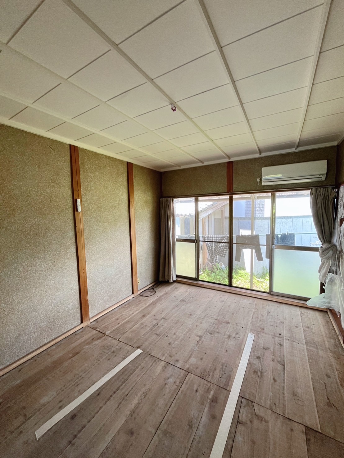 こちらの昔ながらの竿縁天井ですが 下地からやり直し壁紙仕上げにすると 予算と時間もかかるのですが、、、