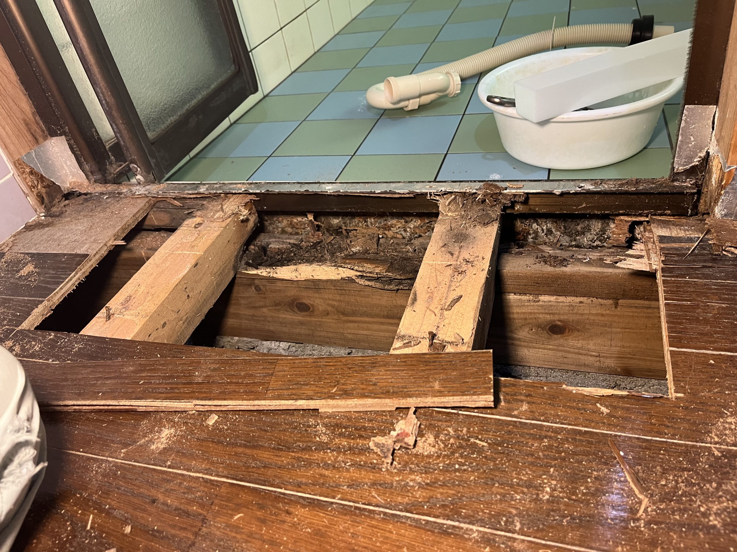 今回は床のフワフワ解消工事です 特にキッチンやお風呂の水回りは腐れや痛みが起こりやすい場所になります
