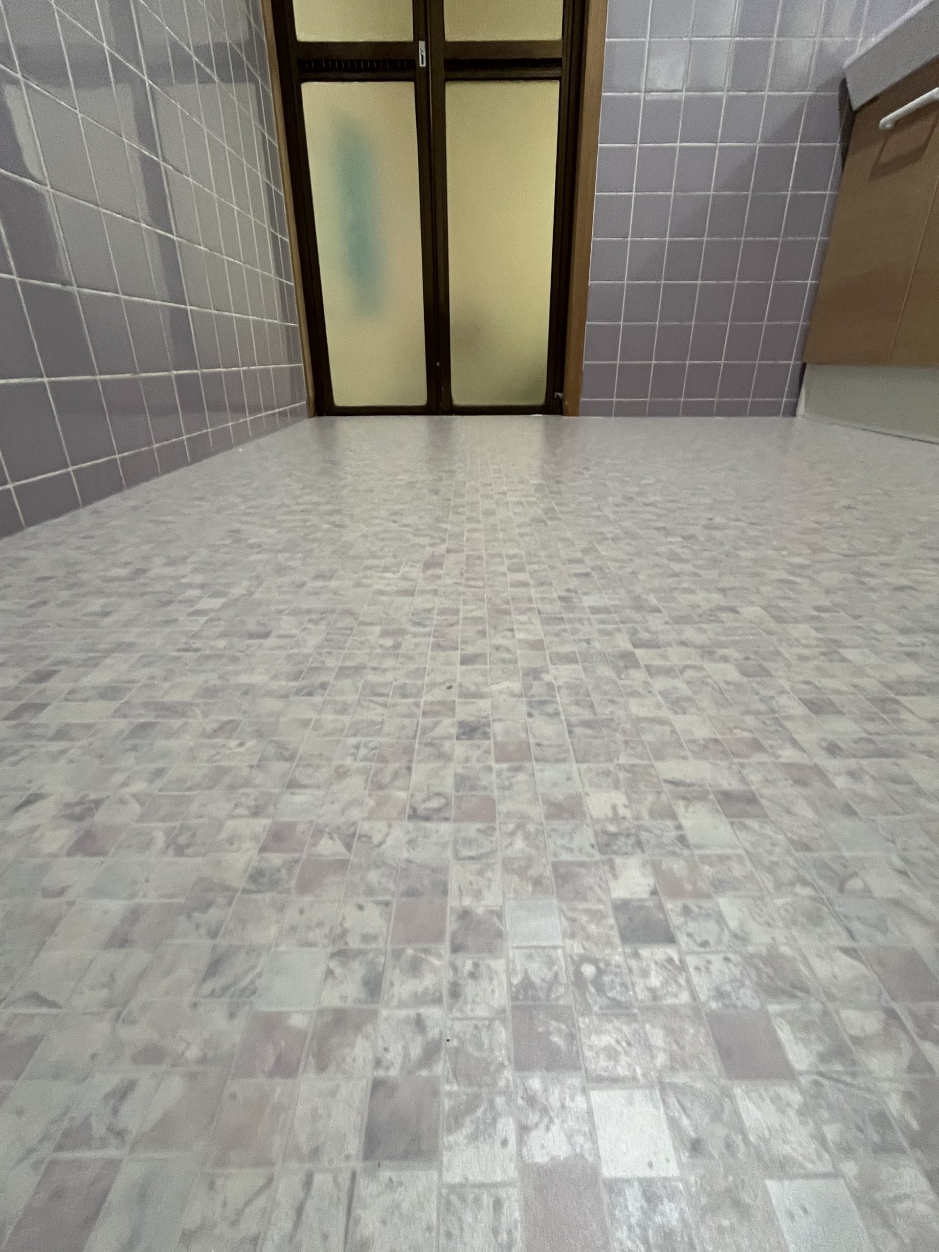 コストも抑えられ、水回りにも強く、色柄も豊富なクッションフロアで仕上げました