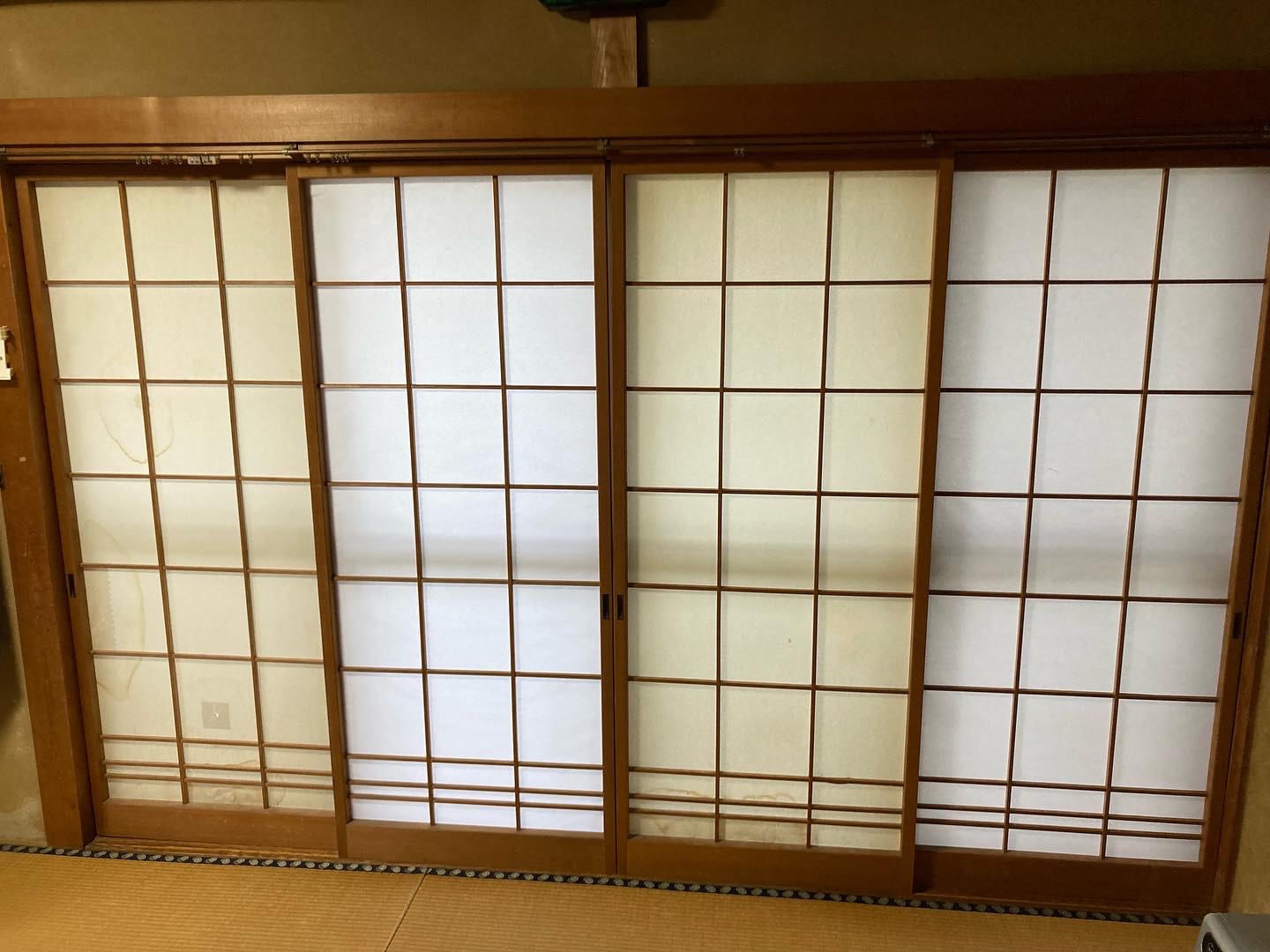 津山市 K様邸 障子の貼り替えです。 鴨居が下がって障子が外れない。とのことでご依頼いただきました。 紙が新しくなり、しっかりと調整させていただき動きもスムーズに。 調整のみでもご依頼いただけます。